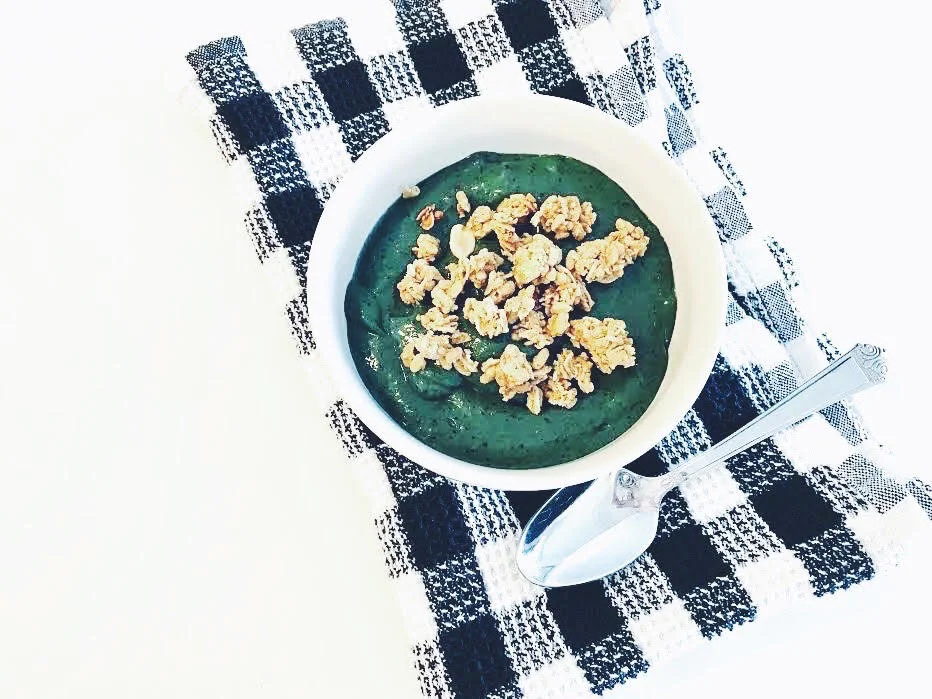 Melissa, here! I am sharing a green smoothie bowl recipe that I make almost every morning for breakfast. On the mornings that I don't have this, I have a smoothie drink, plus an english muffin with almond butter (or avocado), or scrambled eggs with turmeric. Since this smoothie bowl is so filling and satisfying, having it is definitely enough for me. It keeps me feeling full and energized throughout the entire morning. Below are the ingredients and directions!